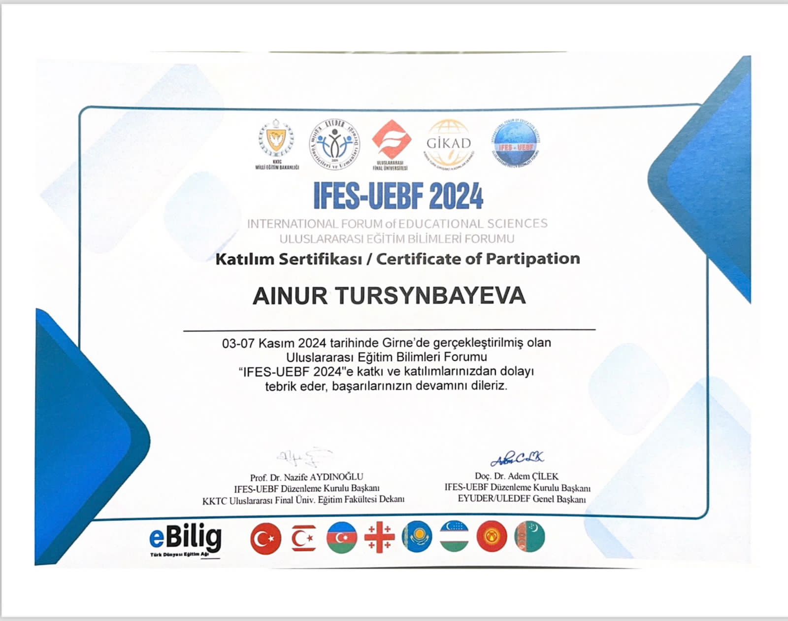 Айнұр Зәкірқызының жетістіктері
